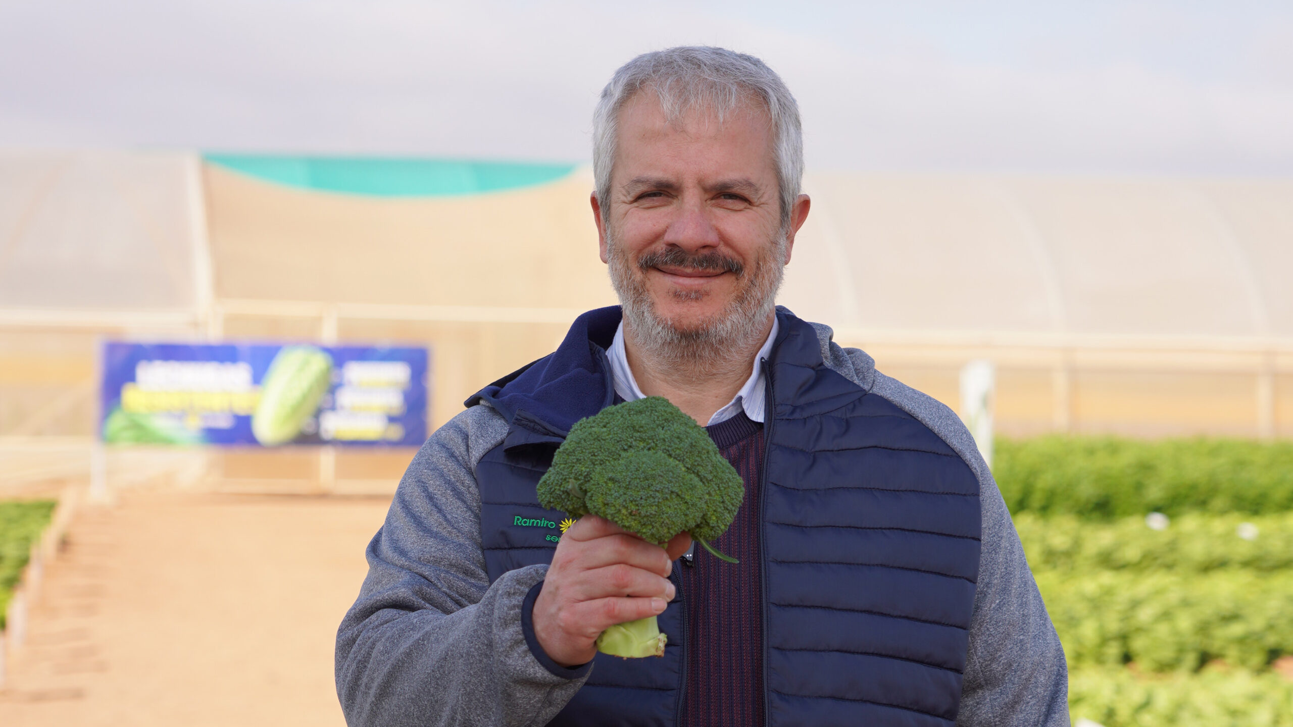 Foto: Francisco Javier Nicolás Caballero, Técnico de Desarrollo en Ramiro Arnedo, posando con el brócoli Templario.